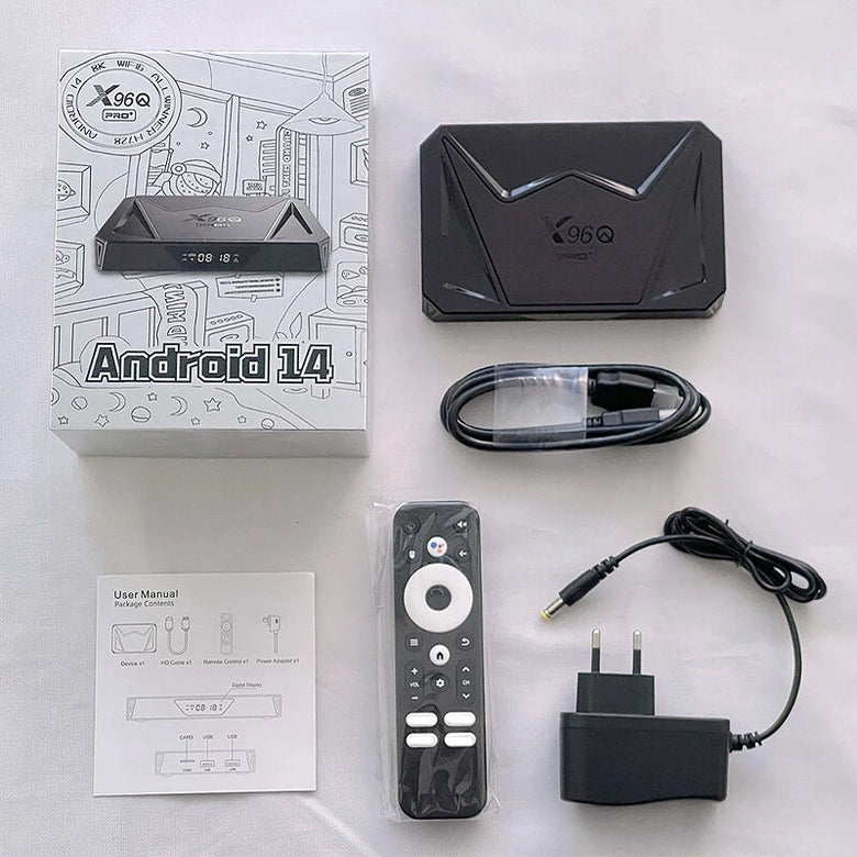 • X96Q PRO+ 4+64G Android 14.0 TV Box Allwinner H728 Octa-core Support WiFi6 & BT5.X 8K 3D Voice Media Player Gigabit Ethernet Set Top Box with Remote Control