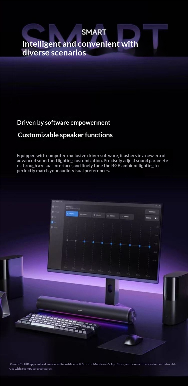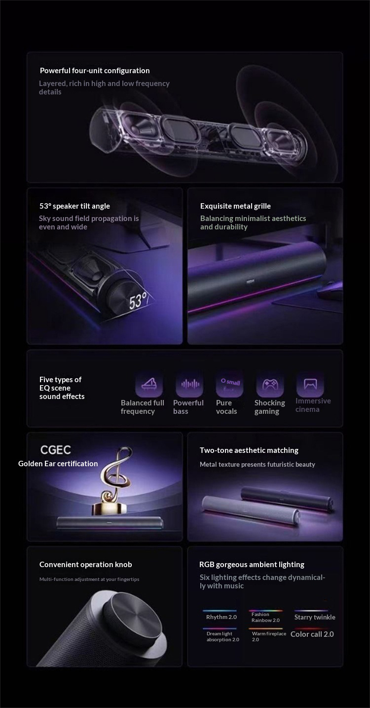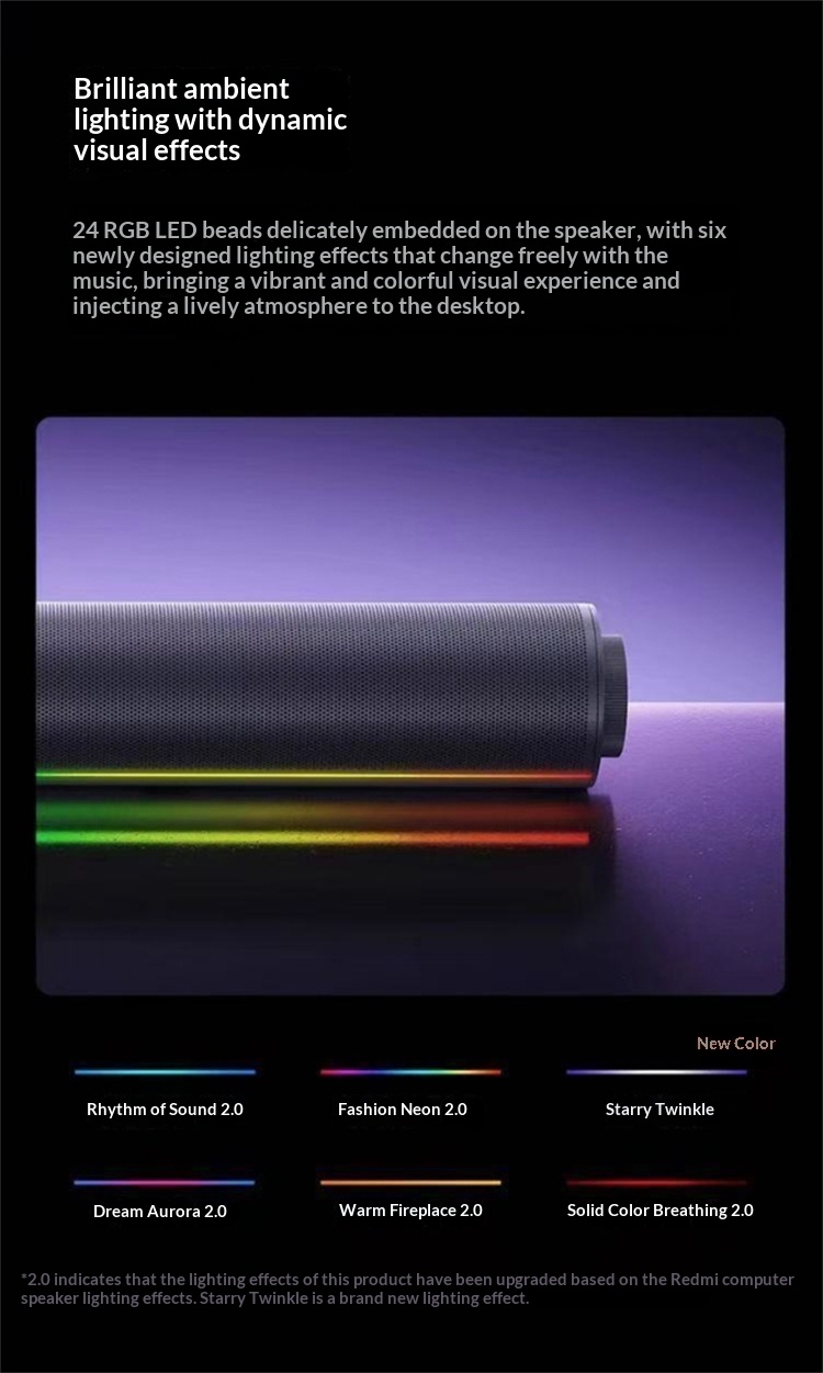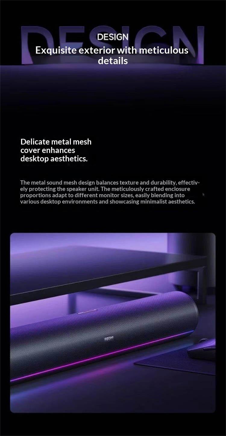 Light up your desktop space with 24 meticulously designed RGB lighting effects. Six diverse lighting modes adjust dynamically to your audio, creating an enchanting visual impact while adding a modern flair to your environment.