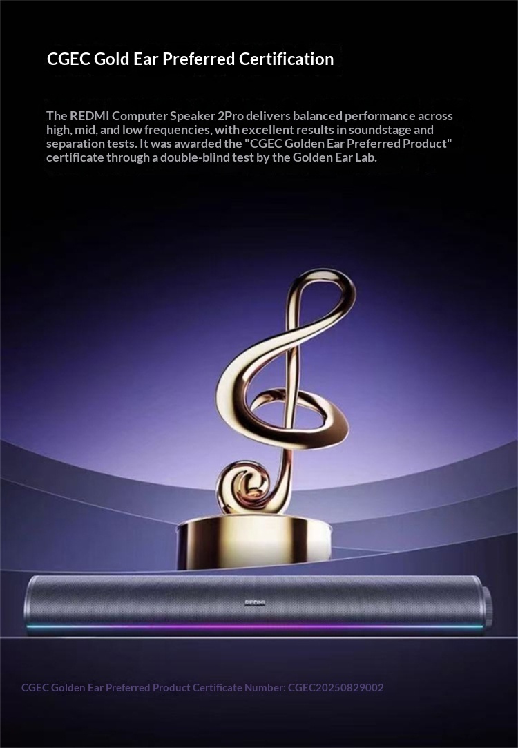 This soundbar has undergone rigorous testing at the CGEC audio lab, resulting in a 'Golden Ear Selection' certification. This guarantees a well-balanced soundstage at low, mid, and high frequencies, ensuring exceptional auditory performance.