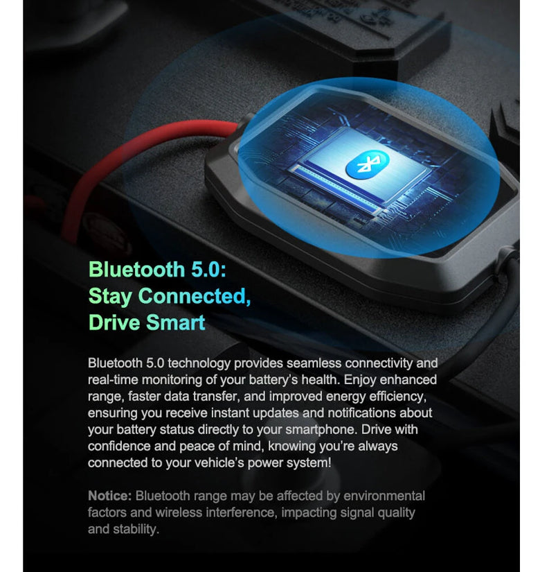 1. bluetooth 5.0 Connectivity: Enjoy seamless connectivity and real-time battery monitoring with the latest Bluetooth 5.0 technology. It ensures faster data transfer and enhanced energy efficiency. Receive instant updates and alerts on your smartphone, providing peace of mind and constant connection to your vehicle’s power system.