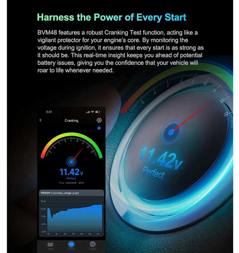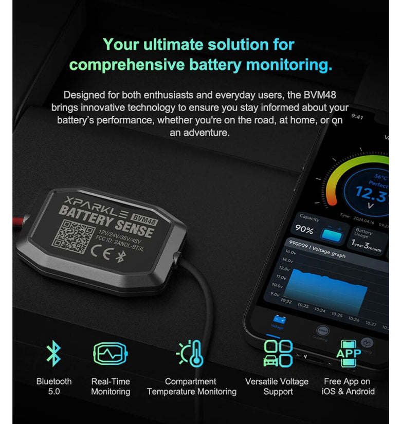 3. Real-Time Monitoring: The BVM48 offers precise voltage readings and key metrics, allowing you to keep track of your battery's health and performance. Optimize battery life and prevent unexpected issues with real-time data directly accessible from your device.