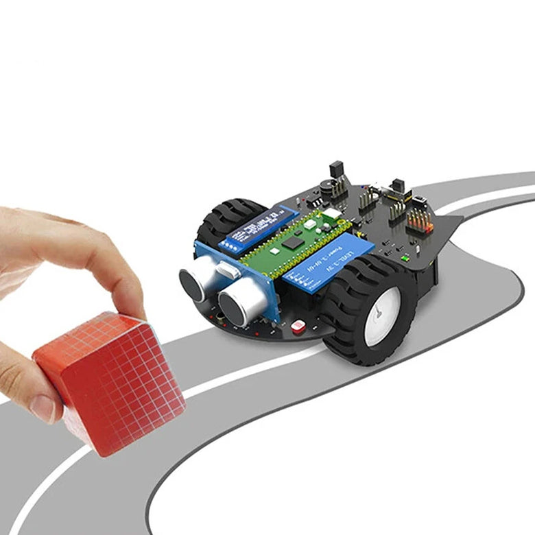 Raspberry Pi Pico robot is a compact and cost-effective educational programmable 2WD smart car. It is based on Raspberry Pi Pico, and uses the MicroPython as programming language, combined with on-board sensors, many interesting functions are realized. This robot possess an infrared receiver and a bluetooth module, so the user can remotely control it through the infrared remote control or mobile phone APP. We reserve the servo interface, IIC interface, and common pins on the expansion board, which is convenient for users to expand more functions. In addition, we will provide a large number of tutorials and source codes. All in all, this is a good platform for programming beginners, programming education institutions or primary education.