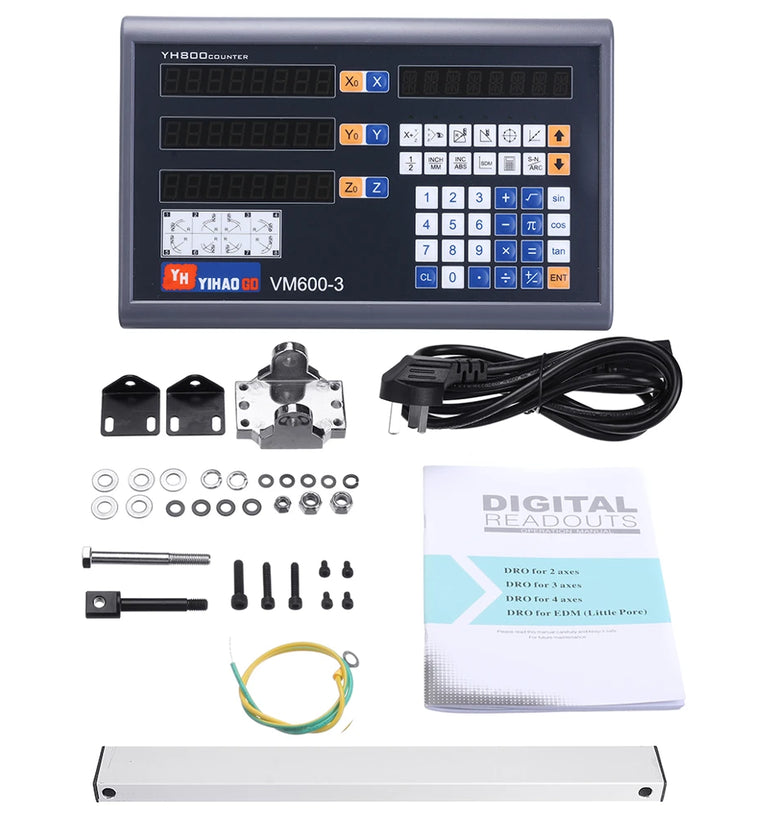 3 Axis Digital Readout Package Included:1 Pcs x 3 Axis Digital Readout1 Pcs x Power Cable(We will send you a extra plug adapter depend on your country)1 Set x Bracket and Accessories1 Pcs x Manual