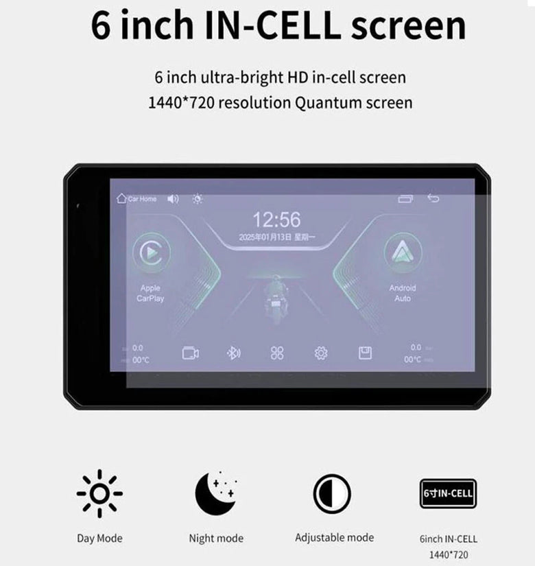 YUEHOO M790 M792 Motorcycle Smart Screen 6Inch IPS Touch Screen 1440*720 Resolution 1000NIT Brightness Bluetooth V5.0  WiFi 2.4+5G Wireless Carplay Huawei Hicar IPX8 Waterproof