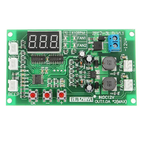 It automatically take turns to display channel 1 temperature, rotation speed, and channel 2 temperature, rotation speed under normal operation; quickly switch the display by pressing the "+" "-" button.