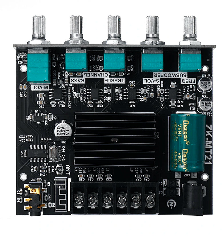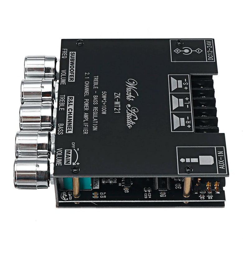 The power supply with the board is very important. The ripple of the selected power supply must be small. A power supply with a large ripple will cause the bottom noise of the power amplifier board to become larger and there will be current noise. The higher the voltage, the greater the current, and the more adequate the output power. The power supply is 12V1A and can be equipped with 3-4inch speakers. If it is above 19V 5A, there is no problem with 8-10 inches, and the power supply must be highly regarded. If the voltage is too low, the amplified sound will easily cause sound distortion. If the current is too low, the speaker will pull down the voltage, which will result in abnormal operation or poor sound quality.
