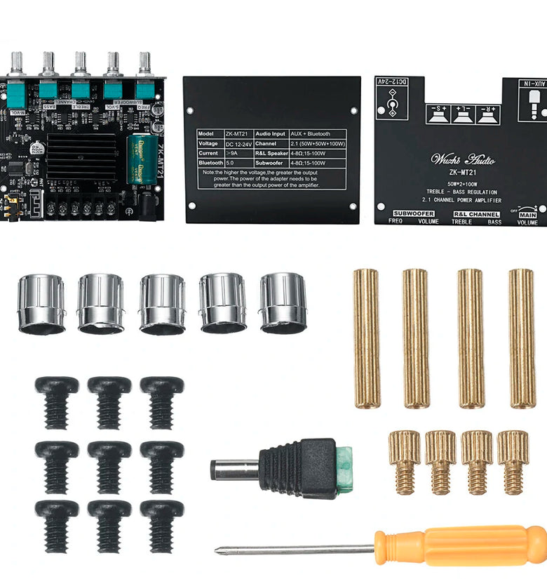 It is recommended to use a power supply of 18V19V24V with a current above 5A. If you only have 9V12V or 1A 2A power supply, it can be used but the power is low. When the volume is selected close to the maximum, it may be distorted and affect the sound quality.