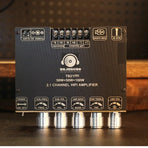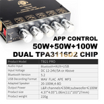 Specifications:>>>APP download from here<<<Model: TB21 PROInput mode: Bluetooth + 3.5mm AUX + USB inputInput voltage: DC 12-24V/5A or aboveBluetooth: 5.2Chip: TPA3116D2 chipMaximum output power: 50W+50W+100WApplicable speakers: 20-100W, 4-8ΩSupport APP control: Yes (change Bluetooth name/set password)U disk decoding: WAV FLAC APE MP3Product size: 111x103x27mmProduct weight: 220gColour:BlackMaterial:ABSPackage includes:1 x Bluetooth amplifier board